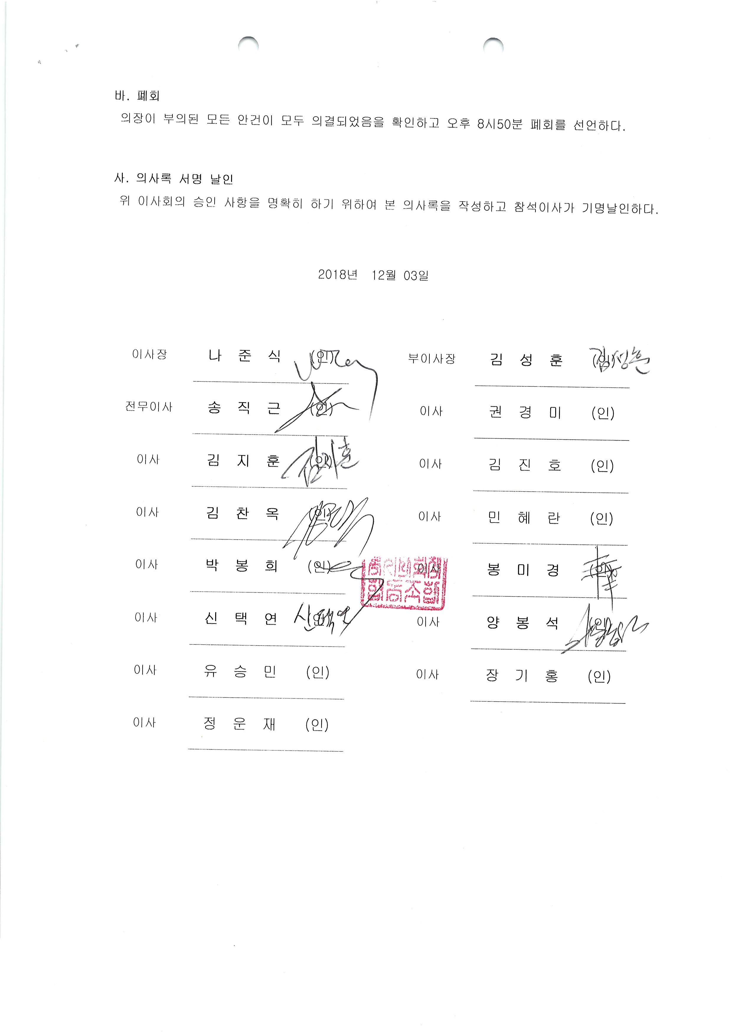 [2018-12] 정기이사회 결과보고
