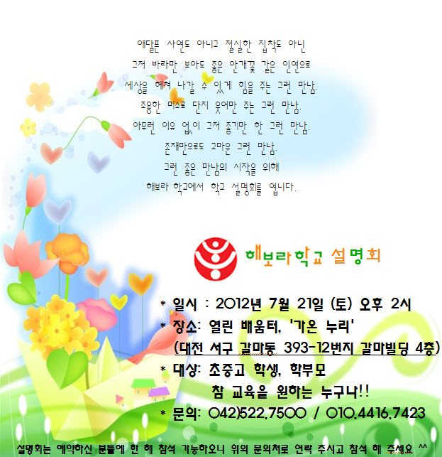 [대전 초중고 대안학교] 해보라학교 설명회 (7월 21일.토.오후2시)
