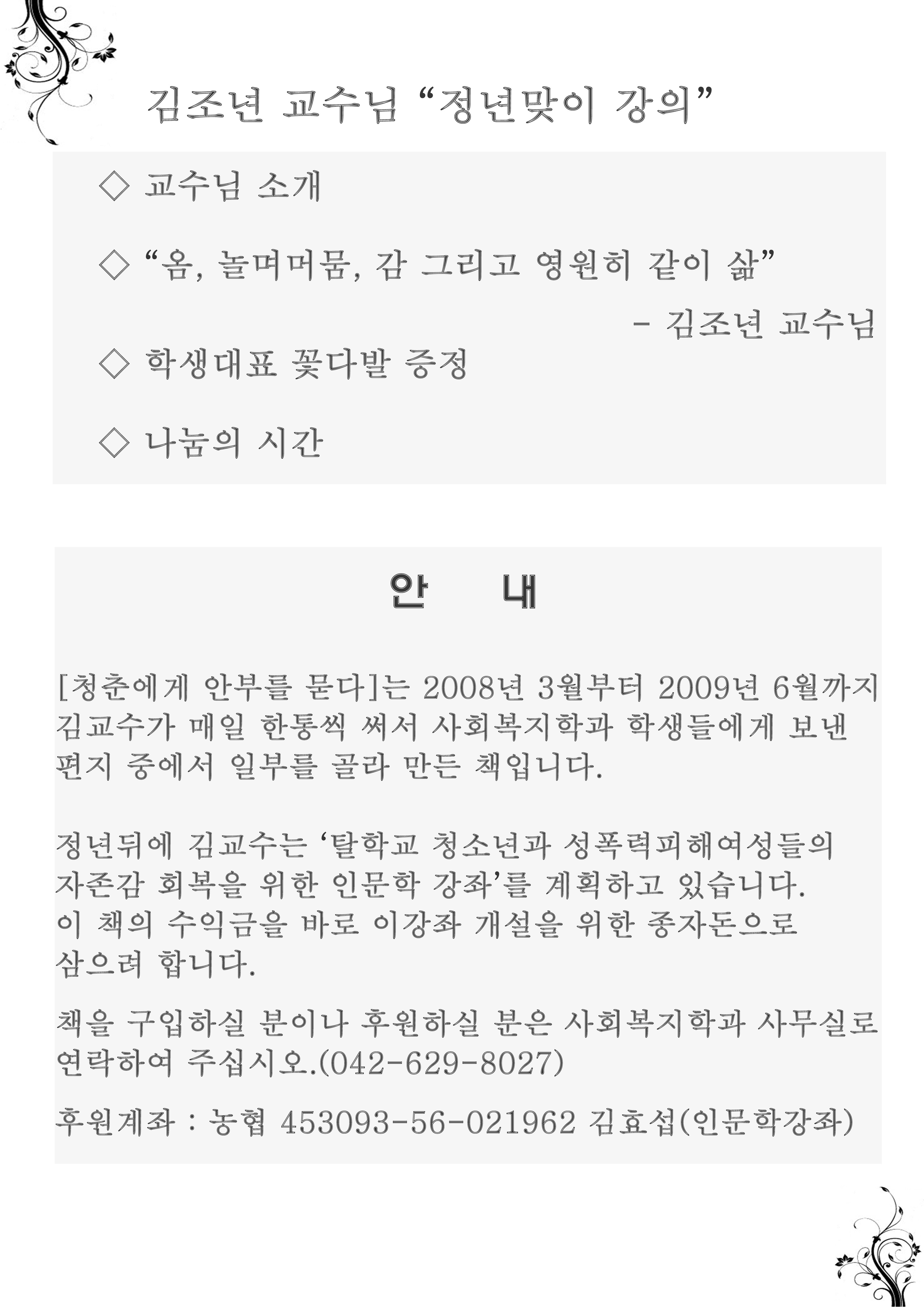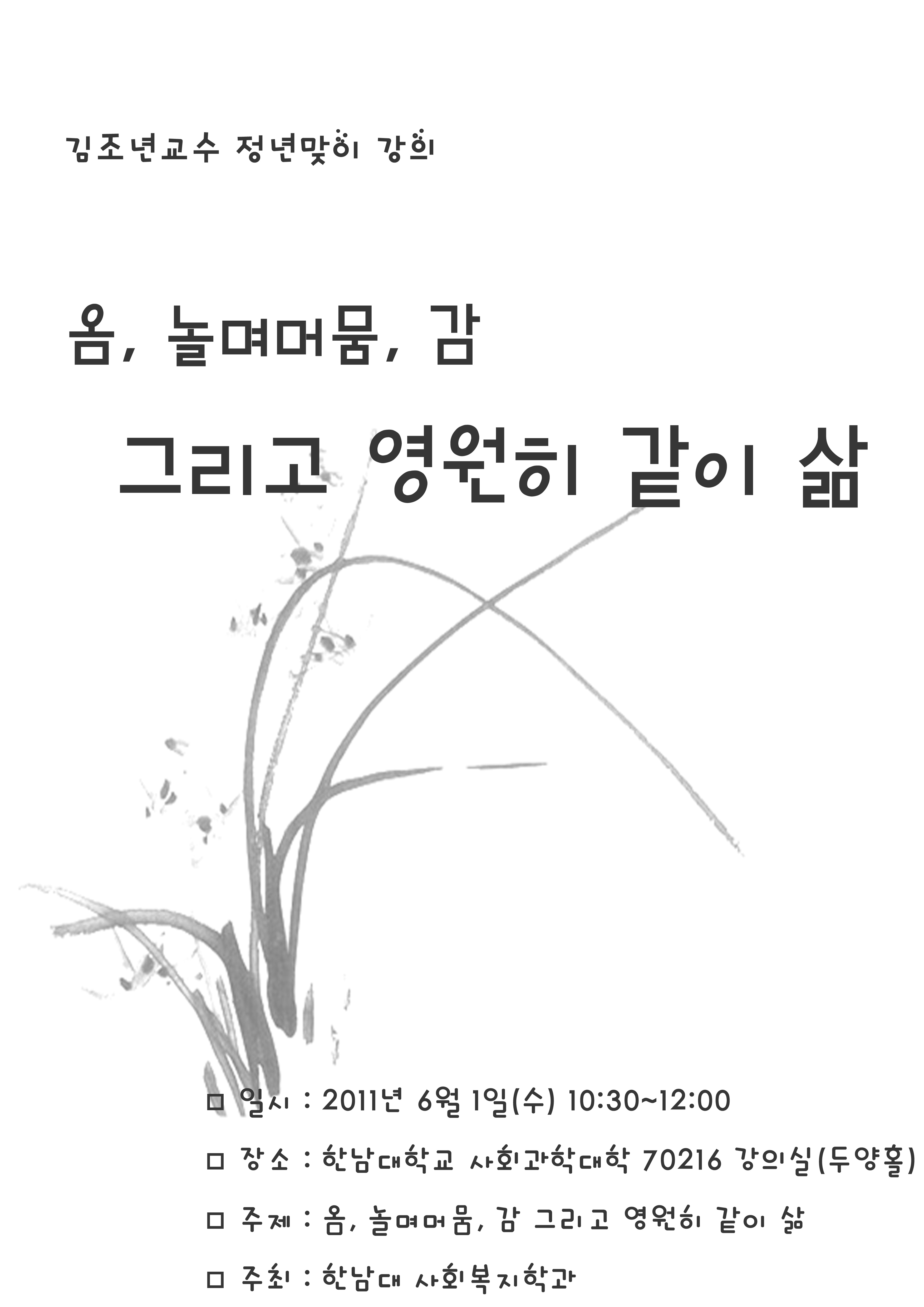 [민들레 소식] 김조년이사장 정년강의 상세내용