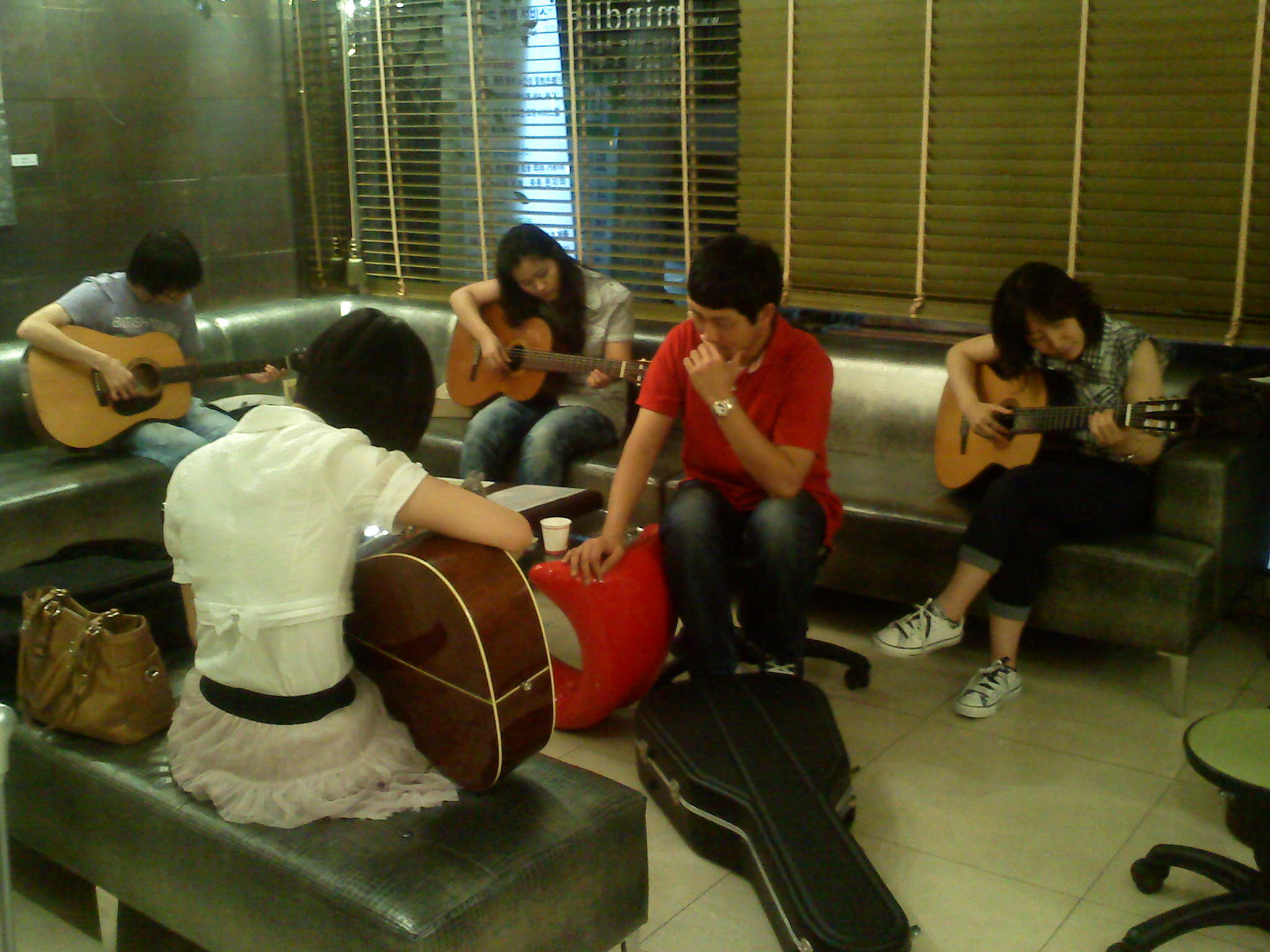 매주 금요일 저녁 7시30분, 민들레의원! 통기타에 빠진 청춘들의 손에 굳은살이 잡히기 시작했습니다. 아직 코드도 헷갈리고 한곡 연습하는 일도 녹녹치 않지만 한데 어우러져 연습하는 그 맛이 참 짜릿합니다. 윤어진 강사쌤의 섬세하고 꼼꼼한 지도 덕분으로 조만간 한 곡이 완성될 것도 같은데요~~~ 마음은 있었지만서도 선뜻 시작 못하고 계셨다면,,, 늦지 않았으니 바로 연락주세요.. ==================================