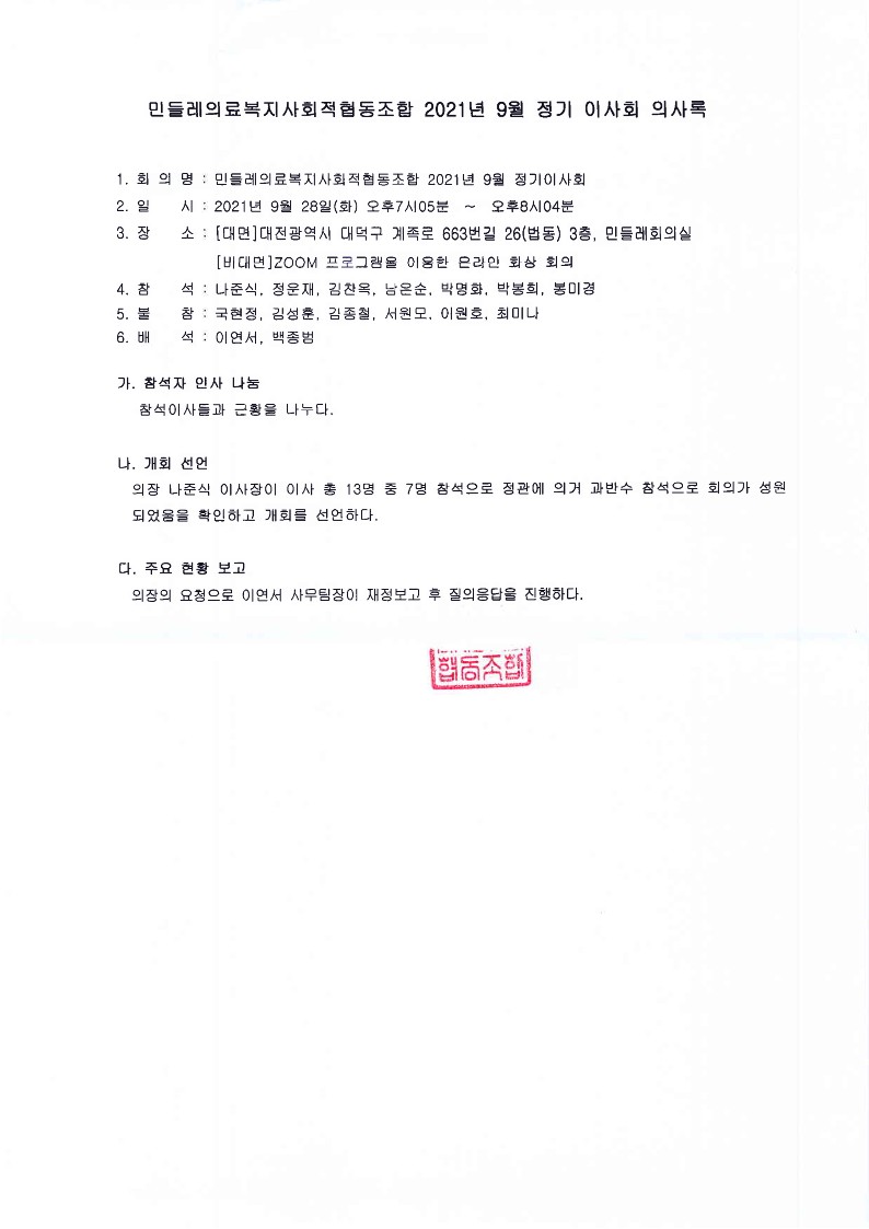 [2021-09] 정기이사회 결과보고