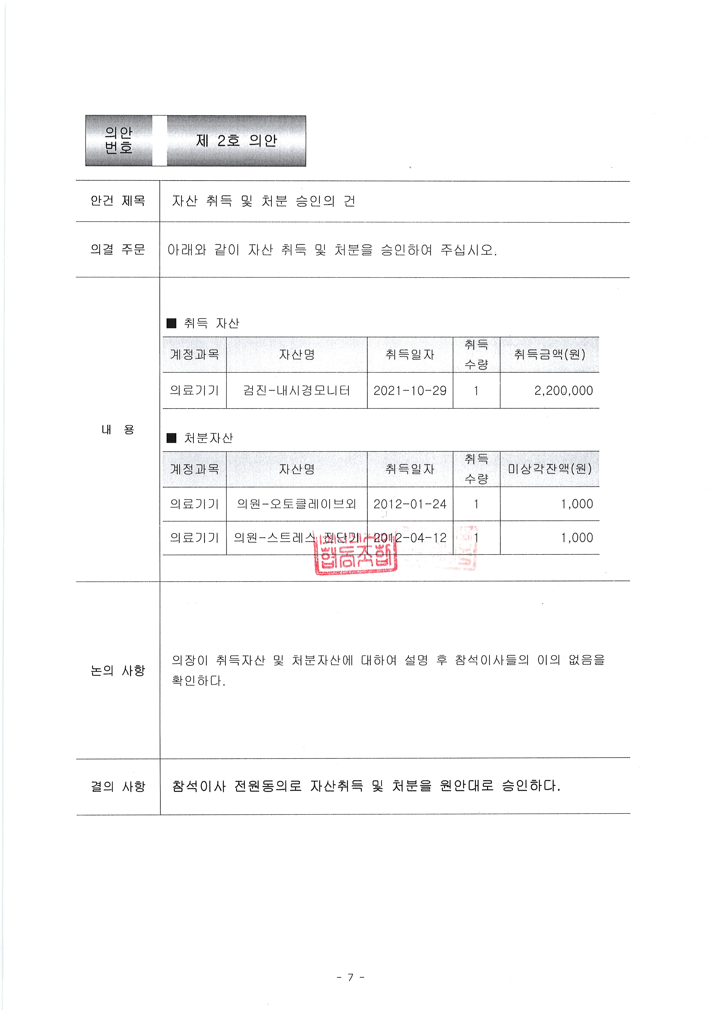 이사회회의록