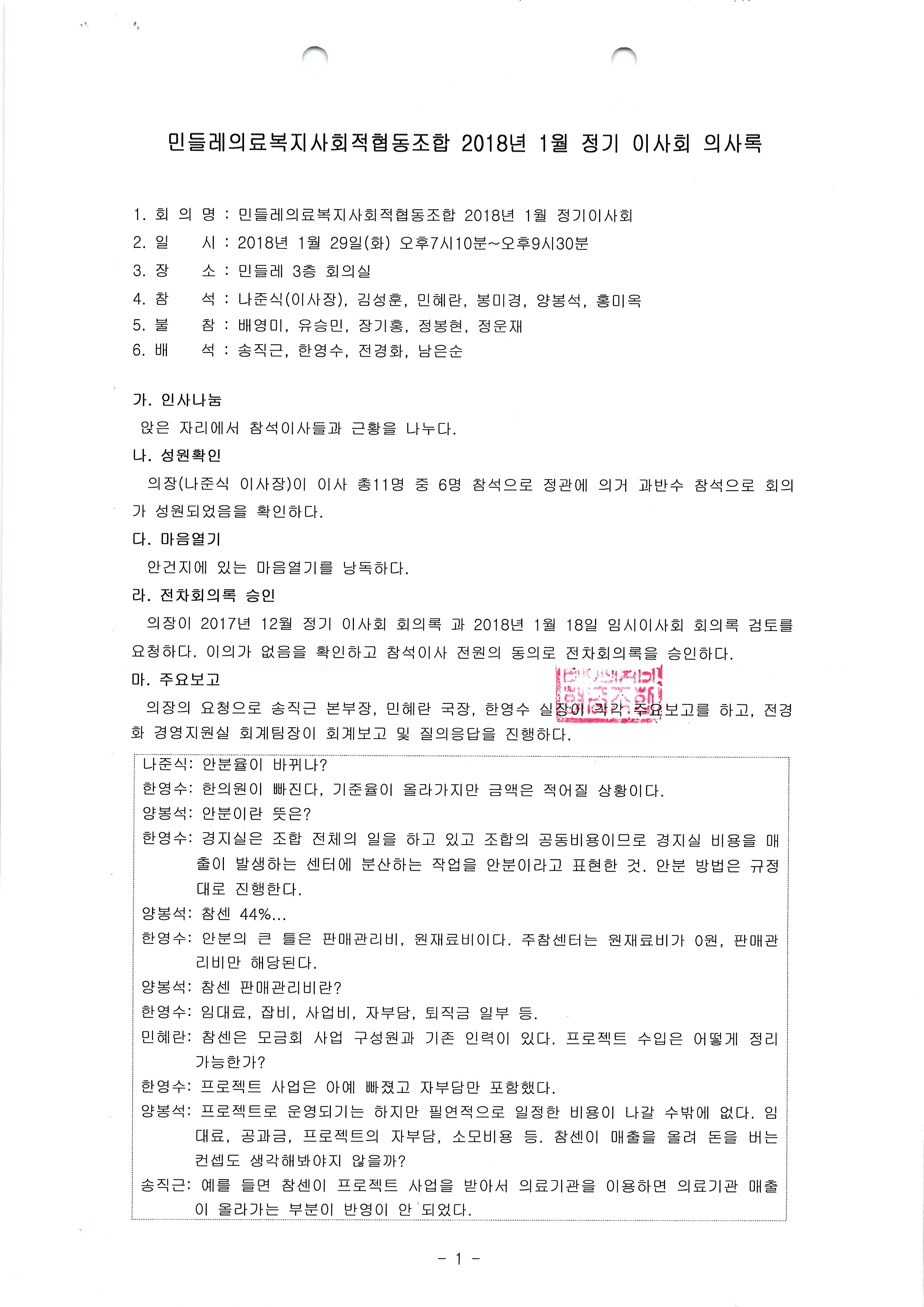 [2018-01] 정기이사회 결과보고