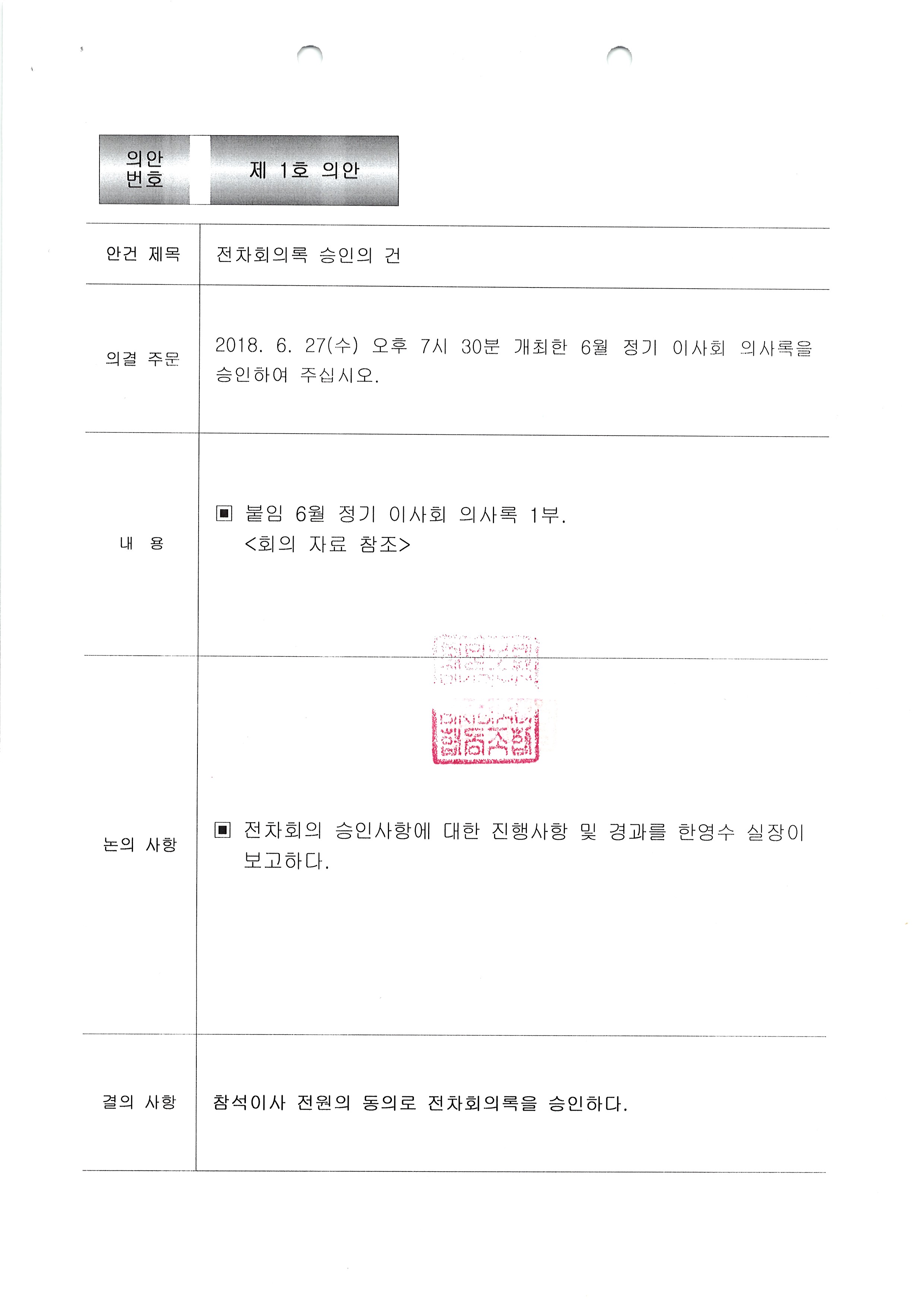[2018-06] 정기이사회 결과보고