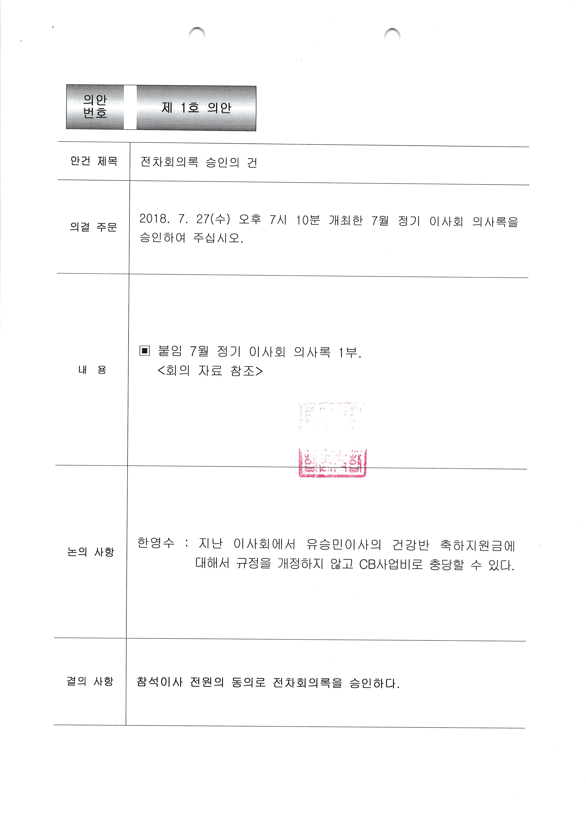 [2018-7] 정기이사회 결과보고