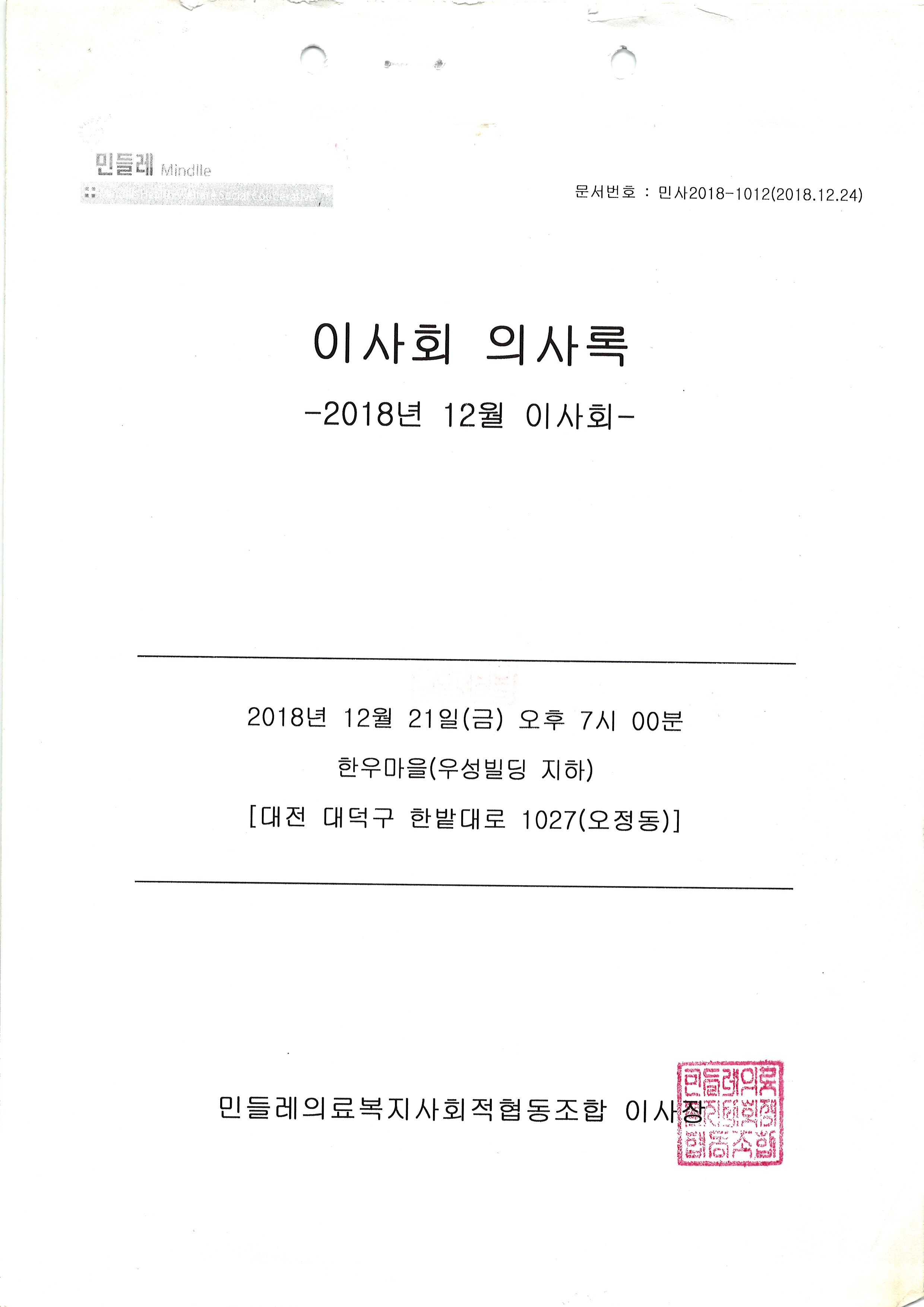 [2018-12] 정기이사회 결과보고