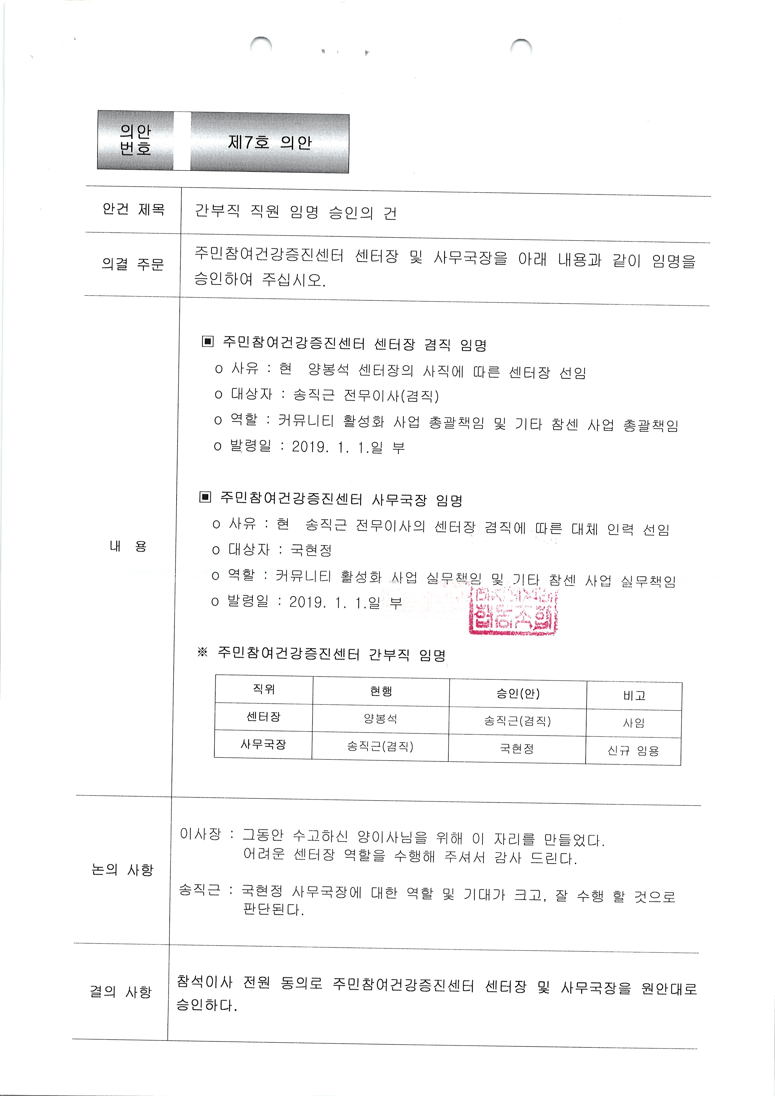 [2019-01] 정기이사회 결과보고